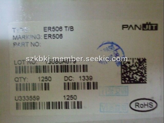 ER506 features: (1)Superfast recovery times-epitaxial construction; (2)Low forward voltage, high current capability; (3)Exceeds environmental standards of MIL-S-19500/228; (4)Hermetically sealed; (5)Low leakage; (6)High surge capability; (7)Plastic package has Underwriters Laboratories; (8)Flammability Classification 94V-O utilizing; (9)Flame Retardant Epoxy Molding Compound; (10)Both normal and Pb free product are available:Normal: 80 to 95% Sn, 5 to 20% Pb, Pb free: 98.5% Sn above.