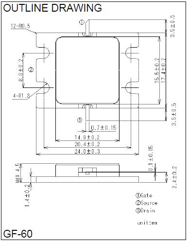 MGFC45B3436B absolute maximum ratings: (1)Gate to drain voltage: -15 V; (2)Gate to source voltage -10 V; (3)Maximum drain current 10 A; (4)Total power dissipation: 78 W; (5)Channel temperature: 175 deg.C; (6)Storage temperature: -65 / +175 deg.C.